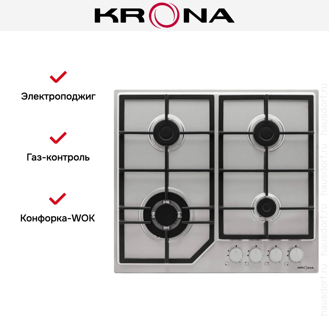 Газовая варочная панель KRONA NEBEL 60 IX W в Екатеринбурге