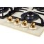 Kuppersberg FQ663 C Gold — бежевая варочная поверхность с золотистой фурнитурой. Панель конфорок из закаленного стекла дополнена высокопрочными чугунными решетками для размещения посуды. Система защиты от утечки автоматически прекращает подачу газа, если пламя гаснет по каким-либо причинам.