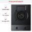 Дизайн панели выдержан в минималистичной эстетике: глубокий чёрный цвет, отсутствие рамки и гладкая эмалированная поверхность создают эффект цельной плоскости, визуально расширяя пространство. Чугунные решётки придают конструкции солидность, устойчиво удерживая посуду любого веса, а их классический вид гармонично сочетается с современным оформлением.