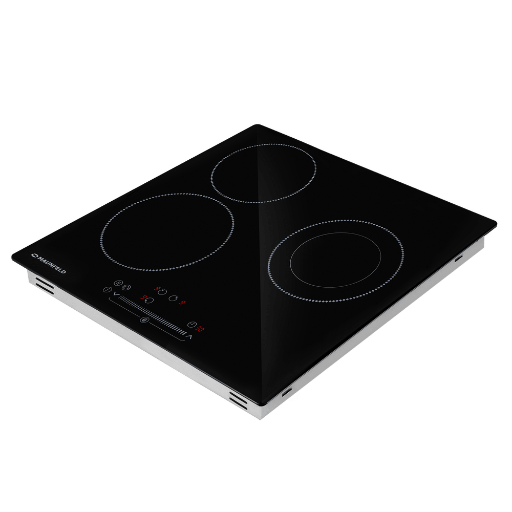 Данная варочная панель имеет классический электрический нагрев, при котором сначала раскаляются конфорки (точнее элементы, скрытые под поверхностью), а затем передают это тепло посуде. Разобраться, как с ней работать, просто даже пожилым людям, привыкшим к плитам. Количество конфорок в этой модели: 3.