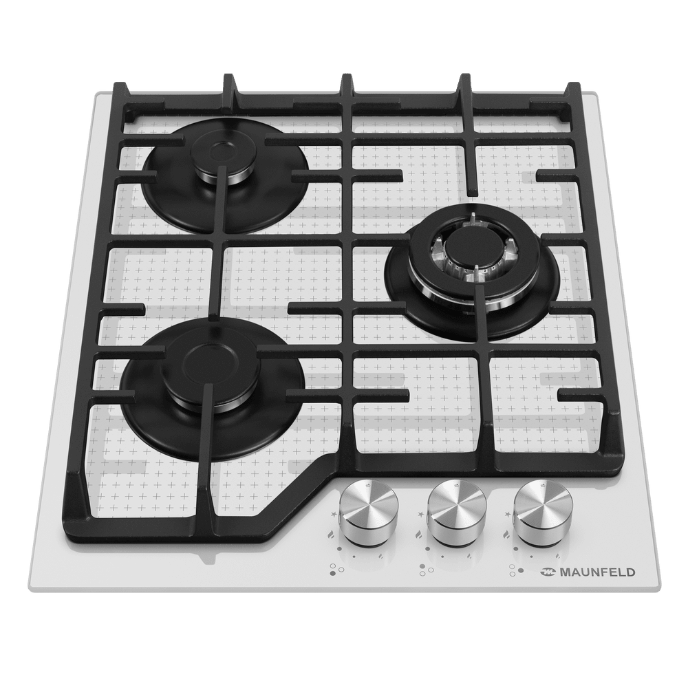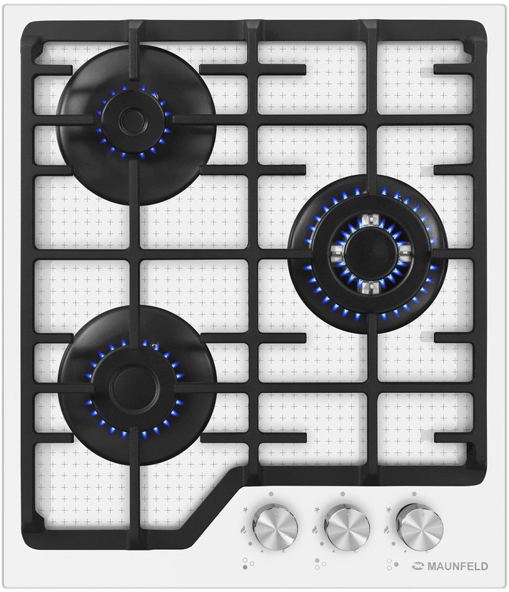 Выбор газовой варочной панели чаще всего обусловлен тем, что в частный дом или квартиру проведен именно газ в качестве обогрева. Работать с этой моделью довольно просто, так как мощность нагрева видна невооруженным взглядом — по силе огня в горелке. Количество конфорок в этой модели: 3.