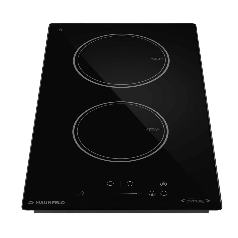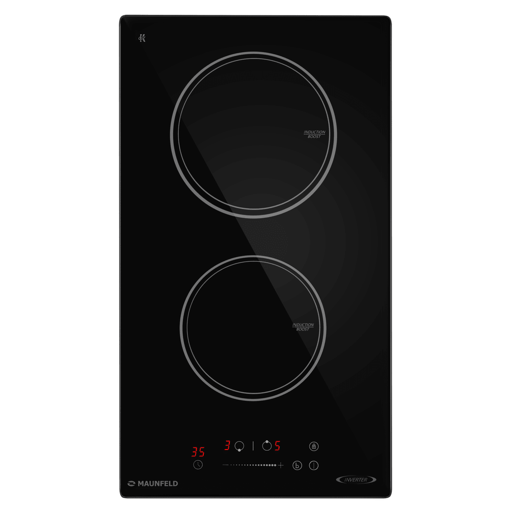 Варочная панель работает на индукционном нагреве — это значит, что повышается температура непосредственно посуды, в которой готовится блюдо. Таким образом промежуточная ступень с предварительным нагревом конфорки пропускается — сокращается время, повышается безопасность. Количество конфорок в этой модели: 2.