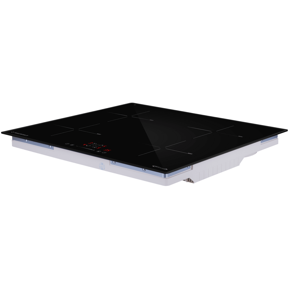 Варочная панель работает на индукционном нагреве — это значит, что повышается температура непосредственно посуды, в которой готовится блюдо. Таким образом промежуточная ступень с предварительным нагревом конфорки пропускается — сокращается время, повышается безопасность. Количество конфорок в этой модели: 4.