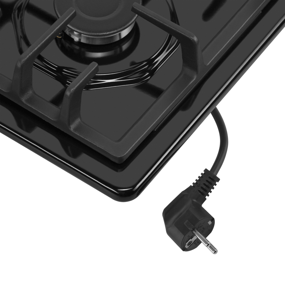 Цвет — черный. Открытый огонь не страшен ни вашей посуде, ни вам, так как горелки надежно закрыты решетками. Материал самой поверхности: закаленное стекло. Управление этой моделью механическое. Для переключения уровней нагрева, выбора функций используются следующие переключатели: сенсорные/TouchControl. Простая система контроля за прибором делают его более универсальным, ведь разобраться сможет кто угодно.