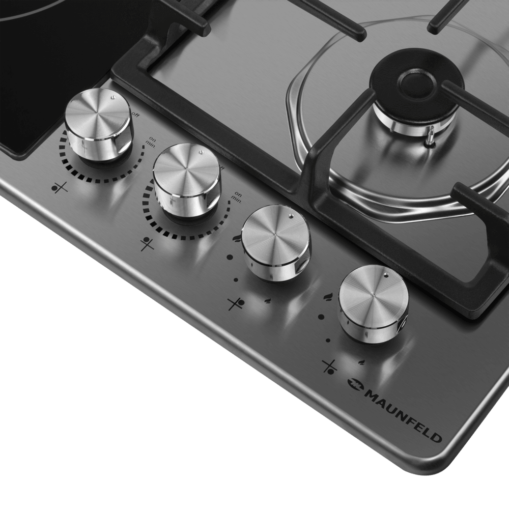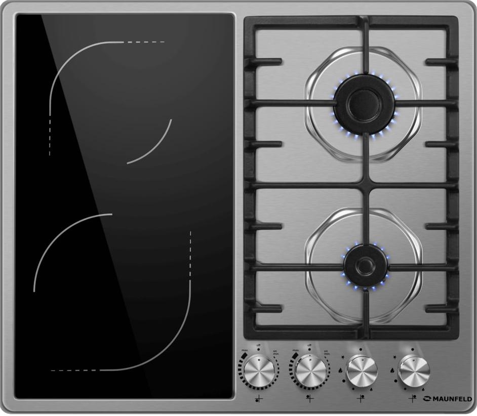 Варочная панель Маунфилд EEHS.642VC.3CS/KG работает с несколькими видами нагрева — благодаря такой комбинации можно экономить энергию, выбирать более подходящие конфорки для тех блюд, которые хочется приготовить сейчас. Количество конфорок в этой модели: 4.