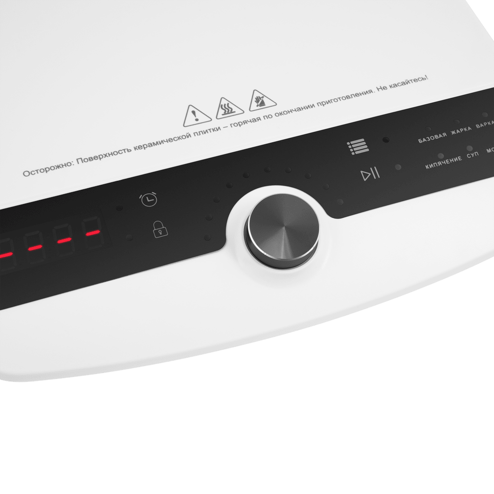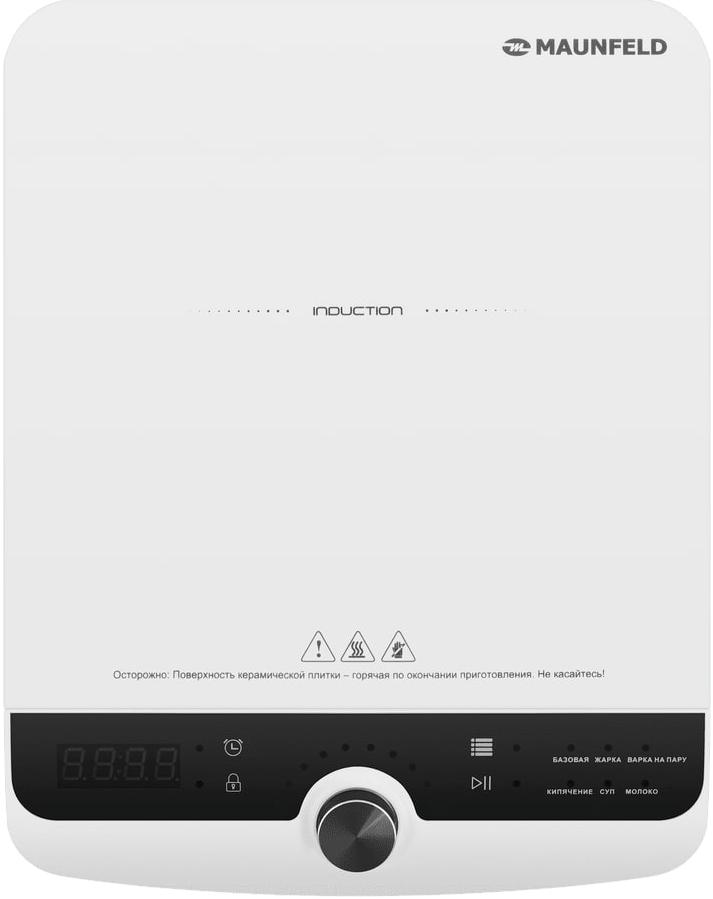 Варочная панель работает на индукционном нагреве — это значит, что повышается температура непосредственно посуды, в которой готовится блюдо. Таким образом промежуточная ступень с предварительным нагревом конфорки пропускается — сокращается время, повышается безопасность. Количество конфорок в этой модели: 1.