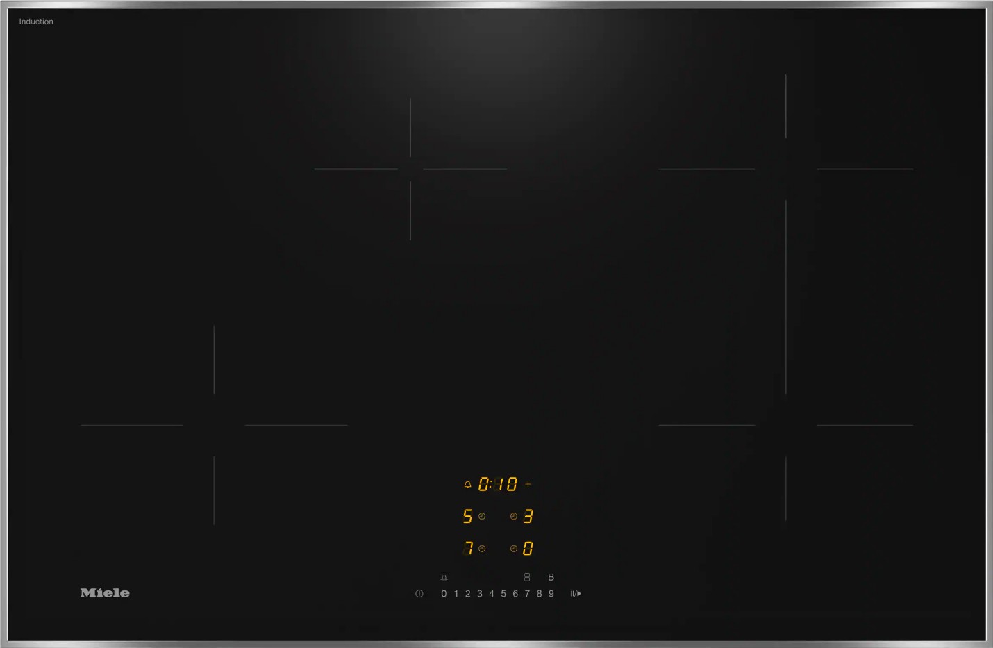 Варочная панель работает на индукционном нагреве — это значит, что повышается температура непосредственно посуды, в которой готовится блюдо. Таким образом промежуточная ступень с предварительным нагревом конфорки пропускается — сокращается время, повышается безопасность. Количество конфорок в этой модели: 4.