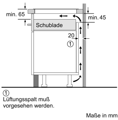 Также опасно устанавливать варочную панель вплотную к холодильнику или шкафу: следует оставить между ними расстояние не менее 30 см. Зазор между задней стороной варочной панели и стенкой кухни составляет обычно не менее 50 см для электрических панелей и 70 см — для газовых. Иногда стену кухни защищают огнеупорной панелью.