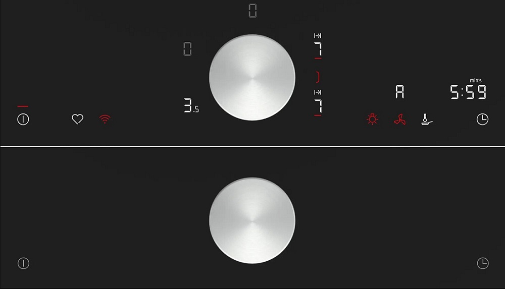 Магнитный съемный переключатель, который нужно перемещать по панели управления в сторону нужной конфорки. На дисплее отображается, с какой зоной нагрева вы сейчас работаете. Чтобы изменить температуру, нужно покрутить переключатель влево или вправо.