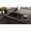 Индукционная варочная панель с интегрированной вытяжкой с автоматическим датчиком воздуха самостоятельно регулирует скорость извлечения в соответствии с ситуацией на кухне. Стеклокерамика черного цвета со стальной рамкой Comfort по бокам и скошенным фронтом выглядит очень современно. Модель можно монтировать в дизайне «Домино» с другими варочными панелями. Четыре индукционные конфорки позволяют регулировать мощность нагрева на 17 уровнях. Функция PowerTransfer позволяет автоматически переносить настройки с одной зоны нагрева на другую, перемещая посуду.