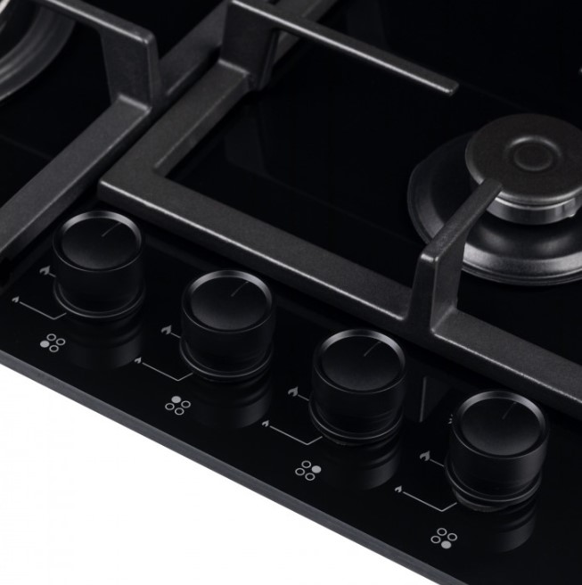 Выбор газовой варочной панели чаще всего обусловлен тем, что в частный дом или квартиру проведен именно газ в качестве обогрева. Работать с этой моделью довольно просто, так как мощность нагрева видна невооруженным взглядом — по силе огня в горелке. Количество конфорок в этой модели: 4.