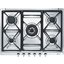 Серебристая фурнитура дополняет панель из нержавеющей стали. Удобные ручки легко крутятся в разные стороны, что позволяет с комфортом регулировать мощность пламени. Подача газа осуществляется к каждой форсунке для равномерного огня. Модель можно подключать к баллонному газу. Специальные форсунки поставляются в комплекте. Для расширения функциональных возможностей предлагается дополнительно приобрести чугунный гриль и кольцо для посуды wok. Гарантия от производителя составляет два года с момента покупки. Среди преимуществ: газ-контроль, автоматический электроподжиг, жиклеры для сжиженного газа в компекте.
