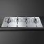 Стильная варочная поверхность серии Linea от Smeg. Модель итальянского производства шириной 100 см с ультранизким профилем отличает необычный дизайн: 4 горелки с вертикальным пламенем располагаются в один ряд. Поверхность без рамки изготовлена из прочной матовой нержавеющей стали. Каждая конфорка оснащена одиночной решеткой из чугуна с алюминиевыми ножками. Несмотря на небольшие размеры, решетка очень устойчива и способна выдержать посуду значительного веса. Никелированные крышки горелок можно снять для более тщательной очистки. Напротив каждой конфорки расположены механические поворотные переключатели цвета нержавеющей стали с подсветкой для бесступенчатой регулировки мощности. Слева находится ультрабыстрая конфорка с 2 рядами пламени мощностью до 4,2 кВт, которая может использоваться для приготовления блюд в посуде с округлым дном. В правом ряду расположена быстрая конфорка повышенной мощности 3 кВт. Воспламенение газа осуществляется нажимом и одновременным поворотом переключателя против часовой стрелки на символ минимального пламени. Функция «газ-контроль» перекрывает подачу газа сразу после угасания пламени. Устройство комплектуется форсунками для подключения к сжиженному газу в баллонах.