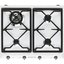 Ручки расположены по всей ширине модели. Каждый элемент оснащен специальной графикой для того, чтобы настройка работы была как можно комфортнее и быстрее. Поверхность изделия легко чистится, устойчива к образованию царапин. Контроль газа — необходимая функция для безопасной эксплуатации. Во время приготовления конфорку может залить выкипающая жидкость или затушить огонь сквозняком. В любом из случаев прибор автоматически остановит подачу газа через несколько секунд. К варочной панели можно приобрести дополнительно чугунный гриль. Официальная гарантия на изделия составляет два года с момента приобретения товара. Среди преимуществ: газ-контроль, чугунные решетки, автоматический электроподжиг.