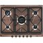 Реже выпускаются панели других оттенков — коричневого, красного, оранжевого, зеленого, цвета меди, фиолетового, бордо — их достаточно трудно сочетать с кухонными гарнитурами и бытовыми приборами. Газовые варочные панели необычных оттенков нередко оснащаются и оригинальной медной, бронзовой или латунной фурнитурой в стиле ретро. Любители цветных варочных панелей могут обратить внимание на продукцию Smeg, Kuppersberg, Kaiser, Ilve, Franke и ряда других производителей.
