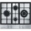 Выбор газовой варочной панели чаще всего обусловлен тем, что в частный дом или квартиру проведен именно газ в качестве обогрева. Работать с этой моделью довольно просто, так как мощность нагрева видна невооруженным взглядом — по силе огня в горелке. Количество конфорок в этой модели: 4. Горелки с тройной короной имеют несколько ступеней нагрева — в зависимости от них образуется несколько кругов пламени.