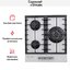 Выбор газовой варочной панели чаще всего обусловлен тем, что в частный дом или квартиру проведен именно газ в качестве обогрева. Работать с этой моделью довольно просто, так как мощность нагрева видна невооруженным взглядом — по силе огня в горелке. Количество конфорок в этой модели: 3. Горелки с тройной короной имеют несколько ступеней нагрева — в зависимости от них образуется несколько кругов пламени.