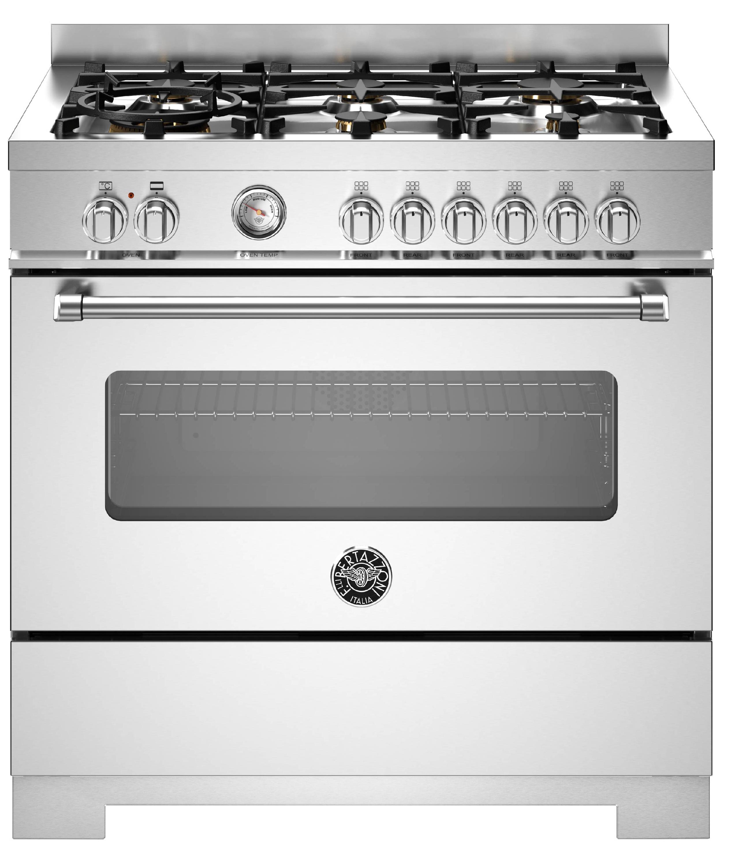 Комбинированная плита Bertazzoni MAS96L1EXT2 — отличный выбор как для квартиры, так и для частного дома. Цвет корпуса нержавеющая сталь, он гармонично сочетается с мебелью и техникой похожих оттенков, а также может интересно выглядеть на контрасте с ними. Для управления используется удобная и понятная механическая система. Благодаря ей выбирать режимы приготовления и настраивать параметры температуры очень просто. Переключатели не только выполняют техническую функцию, но и поддерживают общий дизайн; тип элементов: поворотные.