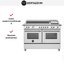 Устройства с тремя духовками также имеют один основной и две дополнительных шкафа разного объема: например, плиты Bertazzoni оснащены большой духовкой объемом 69 литров, средней объемом 54 литра и малой объемом 24 литра. Духовки располагаются в два ряда: две меньшие духовки в одном ряду, большая и ящик для посуды в другом.
