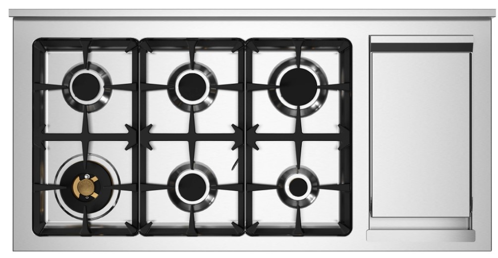 Комбинированная плита Bertazzoni MAS126G2EXT2 — отличный выбор как для квартиры, так и для частного дома. Цвет корпуса нержавеющая сталь, он гармонично сочетается с мебелью и техникой похожих оттенков, а также может интересно выглядеть на контрасте с ними. Для управления используется удобная и понятная механическая система. Благодаря ей выбирать режимы приготовления и настраивать параметры температуры очень просто. Переключатели не только выполняют техническую функцию, но и поддерживают общий дизайн; тип элементов: поворотные.