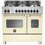 Bertazzoni MAS90 6 MFE D CR T — газо-электрический кухонный блок отдельностоящего типа. Кремовый корпус модели дополнен поворотными регуляторами с покрытием Soft Touch и аналоговым термометром в винтажном стиле. Дверцы духовок имеют трехслойное остекление, благодаря чему фронт устройства остается прохладным даже в процессе приготовления.