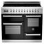 Устройства с тремя духовками также имеют один основной и две дополнительных шкафа разного объема: например, плиты Bertazzoni оснащены большой духовкой объемом 69 литров, средней объемом 54 литра и малой объемом 24 литра. Духовки располагаются в два ряда: две меньшие духовки в одном ряду, большая и ящик для посуды в другом.