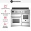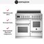 Устройства с тремя духовками также имеют один основной и две дополнительных шкафа разного объема: например, плиты Bertazzoni оснащены большой духовкой объемом 69 литров, средней объемом 54 литра и малой объемом 24 литра. Духовки располагаются в два ряда: две меньшие духовки в одном ряду, большая и ящик для посуды в другом.