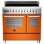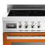 Bertazzoni PRO905IMFEDART — отдельно стоящий варочный центр шириной 100 см, выполненный в ярких оранжевых тонах с отделкой и фурнитурой цвета нержавеющей стали. Модель включает в себя индукционную варочную панель с 5 зонами нагрева и поверхностью из закаленного стекла, а также два электрических духовых шкафа объемом 69 и 38 литров. Варочная панель оснащена 5 зонами нагрева с функцией увеличения мощности и индикацией остаточного тепла. Основная духовка имеет 4 уровня приготовления и 11 режимов работы, в том числе гриль и конвекцию. На фронтальной панели управления находятся механические поворотные переключатели, а также дисплей, отображающий режим работы, время до окончания приготовления и информацию о фактической температуре.