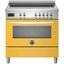 Варочный центр Bertazzoni PRO95I1EGIT в необычном желтом цвете оснащен индукционной варочной поверхностью и электрическим духовым шкафом. Индукционная панель из стеклокерамики оборудована 5 конфорками и обеспечивает быстрый и равномерный прогрев, а благодаря функции Booster мощность одной из них можно увеличить для сокращения времени закипания. Панель управления выполнена в ретро стиле, но дополнена электронным дисплеем и регулировкой режимов работы. Каждая зона нагрева имеет 9 уровней мощности и дополнена датчиками остаточного тепла.