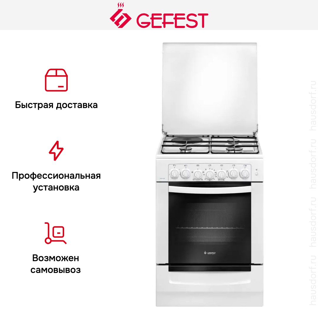 Плита GEFEST 6112-02 выполнена в сдержанном белом цвете и компактных габаритах 85×60×60 см, что делает её подходящей для разных кухонь, от студий до семейных кухонных зон. Корпус аккуратно вписывается в интерьер благодаря ровным линиям и отсутствию лишних деталей. Эмалированная варочная панель и металлическая крышка придают прибору практичный вид и упрощают уход.