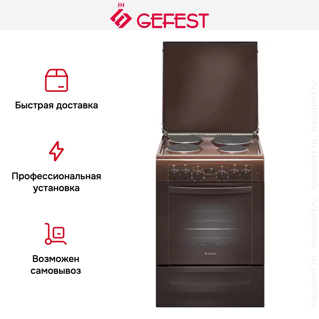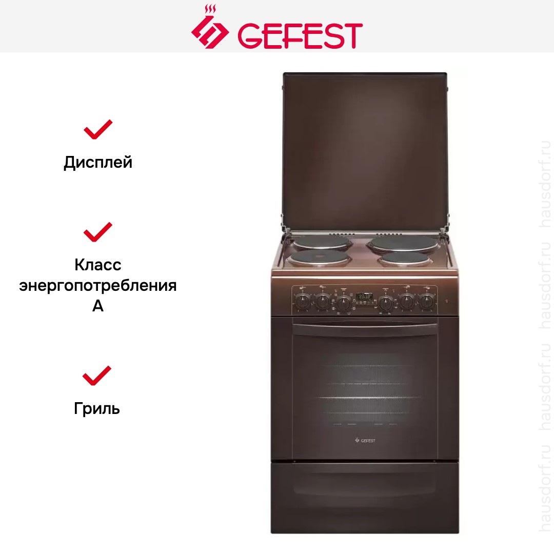 Электрическая плита Gefest 6140-03 0001 — отличный выбор как для квартиры, так и для частного дома. Цвет корпуса коричневый, он гармонично сочетается с мебелью и техникой похожих оттенков, а также может интересно выглядеть на контрасте с ними. Для управления используется удобная и понятная электронная система. Благодаря ей выбирать режимы приготовления и настраивать параметры температуры очень просто. Основная информация о процессе отображается на дисплее. Переключатели не только выполняют техническую функцию, но и поддерживают общий дизайн; тип элементов: поворотные.