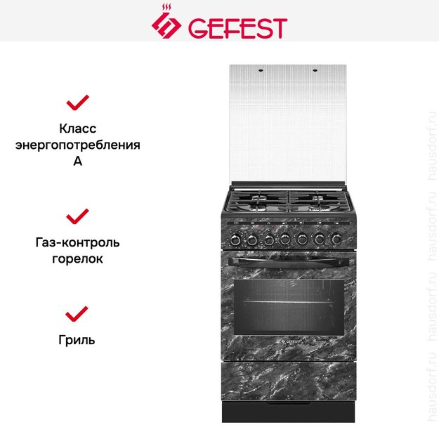 Комбинированная плита Gefest 5302-03 0053 — отличный выбор как для квартиры, так и для частного дома. Цвет корпуса черный, он гармонично сочетается с мебелью и техникой похожих оттенков, а также может интересно выглядеть на контрасте с ними. Для управления используется удобная и понятная механическая система. Благодаря ей выбирать режимы приготовления и настраивать параметры температуры очень просто. Переключатели не только выполняют техническую функцию, но и поддерживают общий дизайн; тип элементов: поворотные.