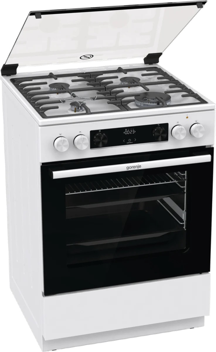 Комбинированная плита Gorenje GKS6C70WA — отличный выбор как для квартиры, так и для частного дома. Цвет корпуса белый, он гармонично сочетается с мебелью и техникой похожих оттенков, а также может интересно выглядеть на контрасте с ними. Для управления используется удобная и понятная электронная система. Благодаря ей выбирать режимы приготовления и настраивать параметры температуры очень просто. Основная информация о процессе отображается на дисплее. Переключатели не только выполняют техническую функцию, но и поддерживают общий дизайн; тип элементов: сенсорные + поворотные.
