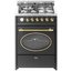 Гораздо разнообразнее представлена фурнитура в моделях в классическом, средиземноморском, деревенском или ретро-дизайне. Так, модели производства Lofra оснащаются фигурными рейлингами и поворотными переключателями цвета латуни, состаренного серебра, хрома, золота. В варочных центрах La Cornue интерес представляет круглая накладная ручка дверцы духовки серебристого цвета. Фурнитурой в стиле ретро оснащаются варочные центры производства Smeg, Kaiser, Bertazzoni, но особенно разнообразны и оригинальны модели производства итальянской компании Restart с фурнитурой из меди и латуни. Каждая такая модель изготавливается по индивидуальному проекту, и покупатель может выбрать цвет и форму переключателей, дверцы и ручек духовых шкафов и другие элементы дизайна.