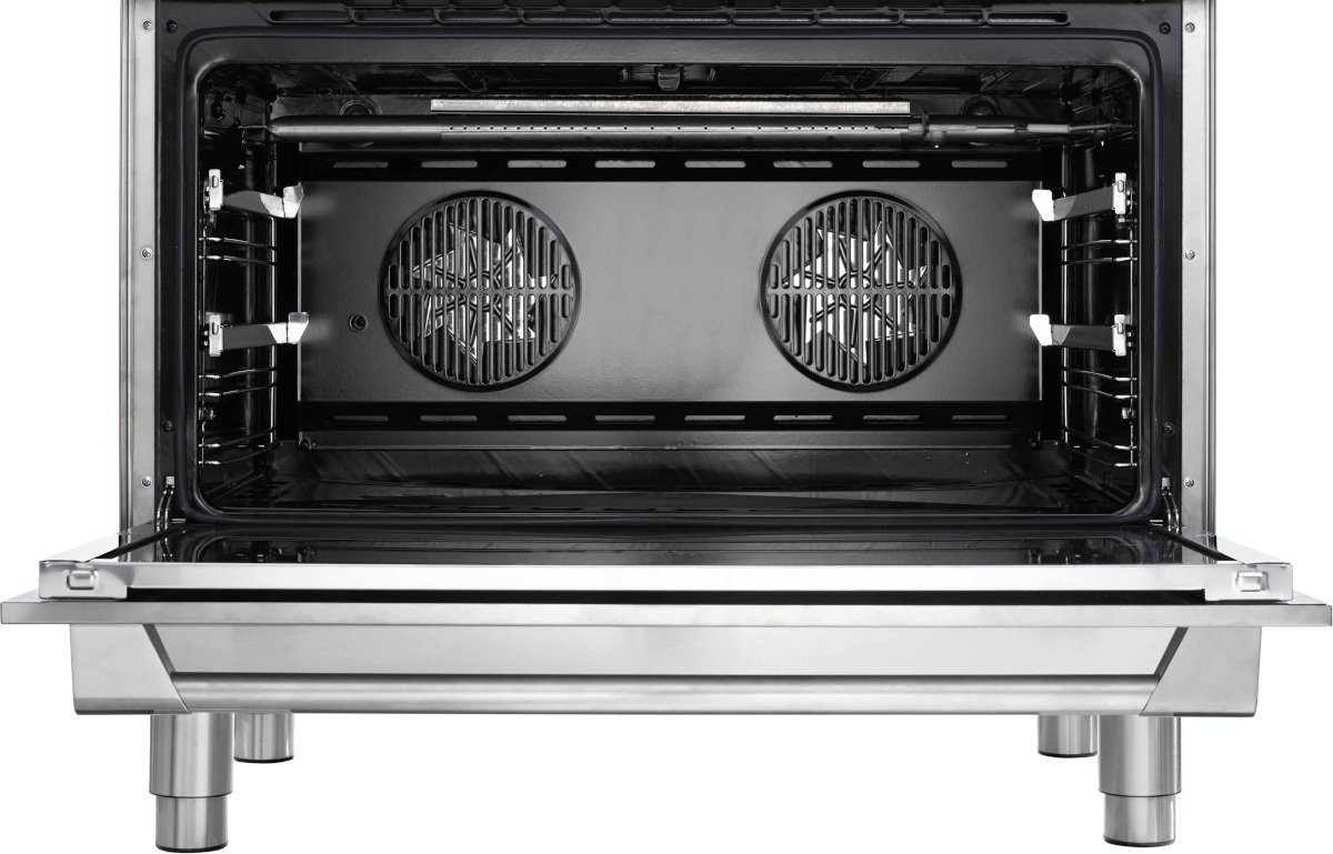 Комбинация нагревательных элементов в потолке и основании камеры позволяет создать хрустящую корочку, при этом полностью пропечь блюдо внутри.