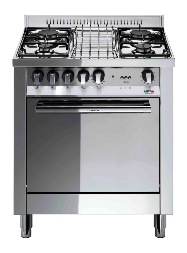 Газовая плита Lofra M75GV — отличный выбор как для квартиры, так и для частного дома. Цвет корпуса нержавеющая сталь, он гармонично сочетается с мебелью и техникой похожих оттенков, а также может интересно выглядеть на контрасте с ними. Для управления используется удобная и понятная механическая система. Благодаря ей выбирать режимы приготовления и настраивать параметры температуры очень просто. Переключатели не только выполняют техническую функцию, но и поддерживают общий дизайн; тип элементов: поворотные.