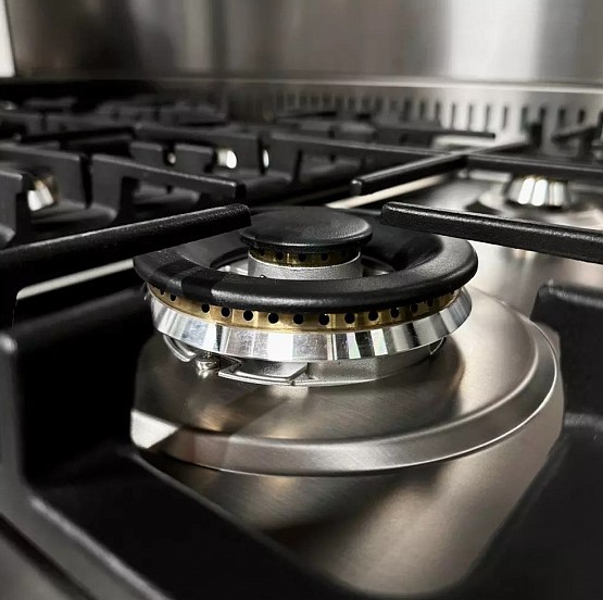 Газовые горелки закрыты специальными решетками, которые не только защищают вас, но и являются устойчивым основанием для посуды с любым дном. Материал решеток: чугун. От утечки газа, если пламя случайно погаснет, защищает система контроля и блокировки топлива.