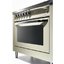 Устройства с тремя духовками также имеют один основной и две дополнительных шкафа разного объема: например, плиты Bertazzoni оснащены большой духовкой объемом 69 литров, средней объемом 54 литра и малой объемом 24 литра. Духовки располагаются в два ряда: две меньшие духовки в одном ряду, большая и ящик для посуды в другом.
