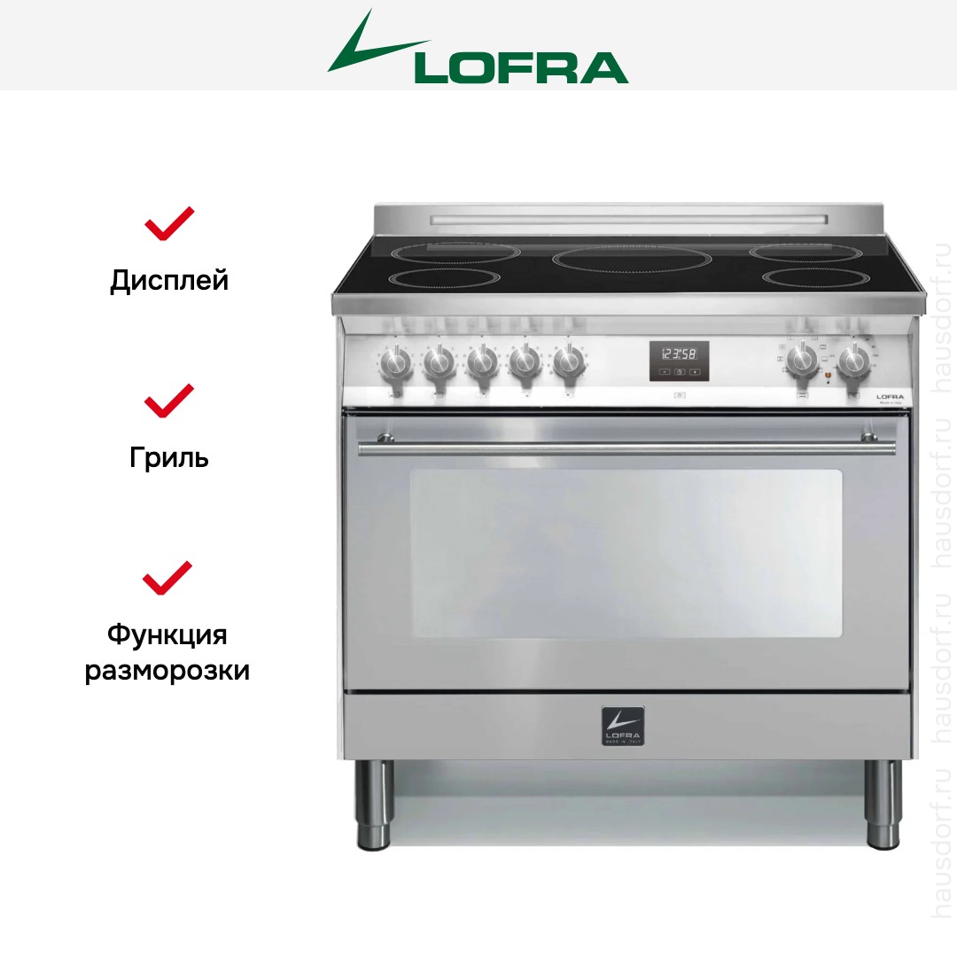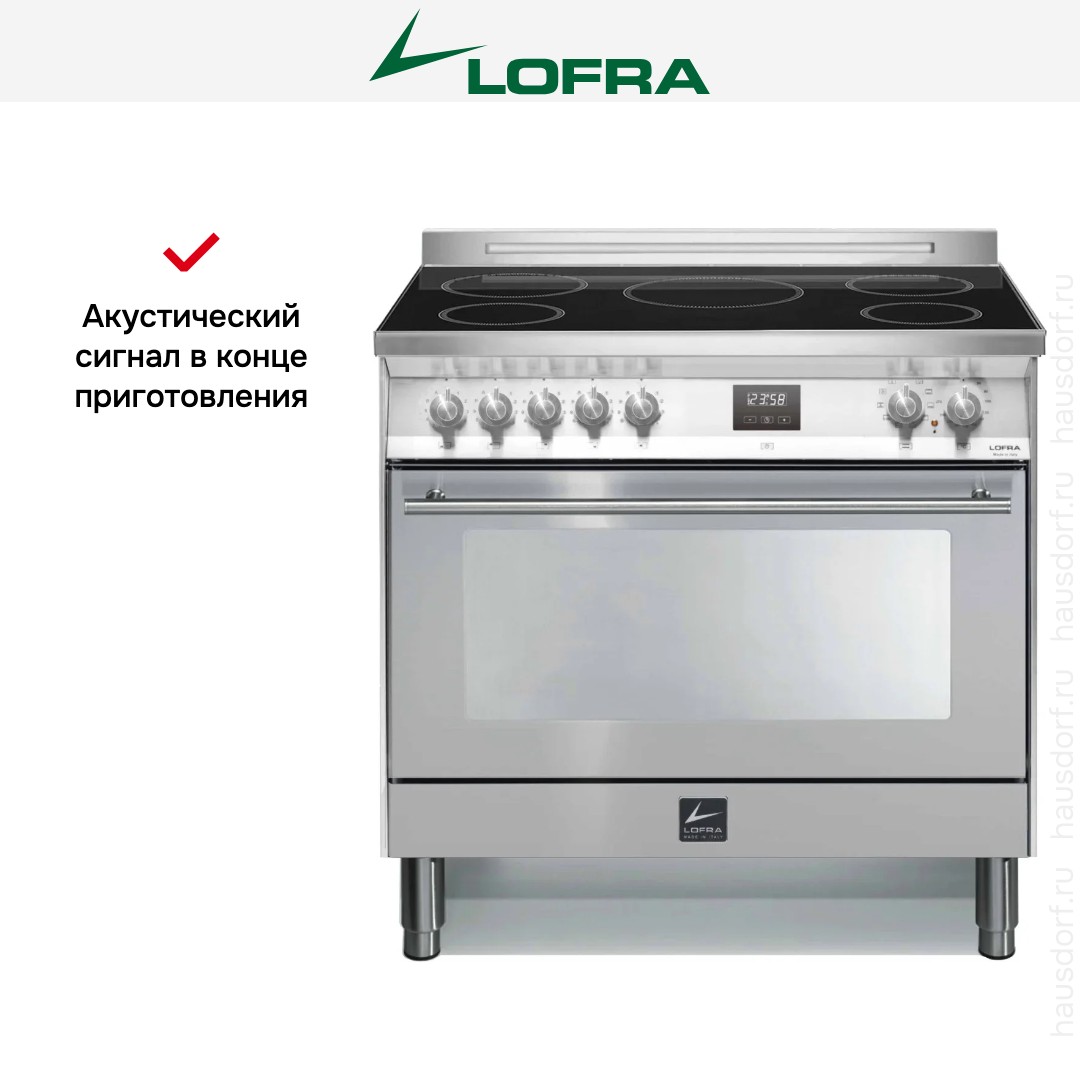 Электрическая плита Lofra PG96WMFT/5I — отличный выбор как для квартиры, так и для частного дома. Цвет корпуса нержавеющая сталь, он гармонично сочетается с мебелью и техникой похожих оттенков, а также может интересно выглядеть на контрасте с ними. Для управления используется удобная и понятная электронная система. Благодаря ей выбирать режимы приготовления и настраивать параметры температуры очень просто. Основная информация о процессе отображается на дисплее. Переключатели не только выполняют техническую функцию, но и поддерживают общий дизайн; тип элементов: сенсорные + поворотные.
