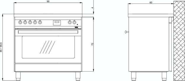 - Габариты, ВхШхГ (см): 85-90.5х90х60