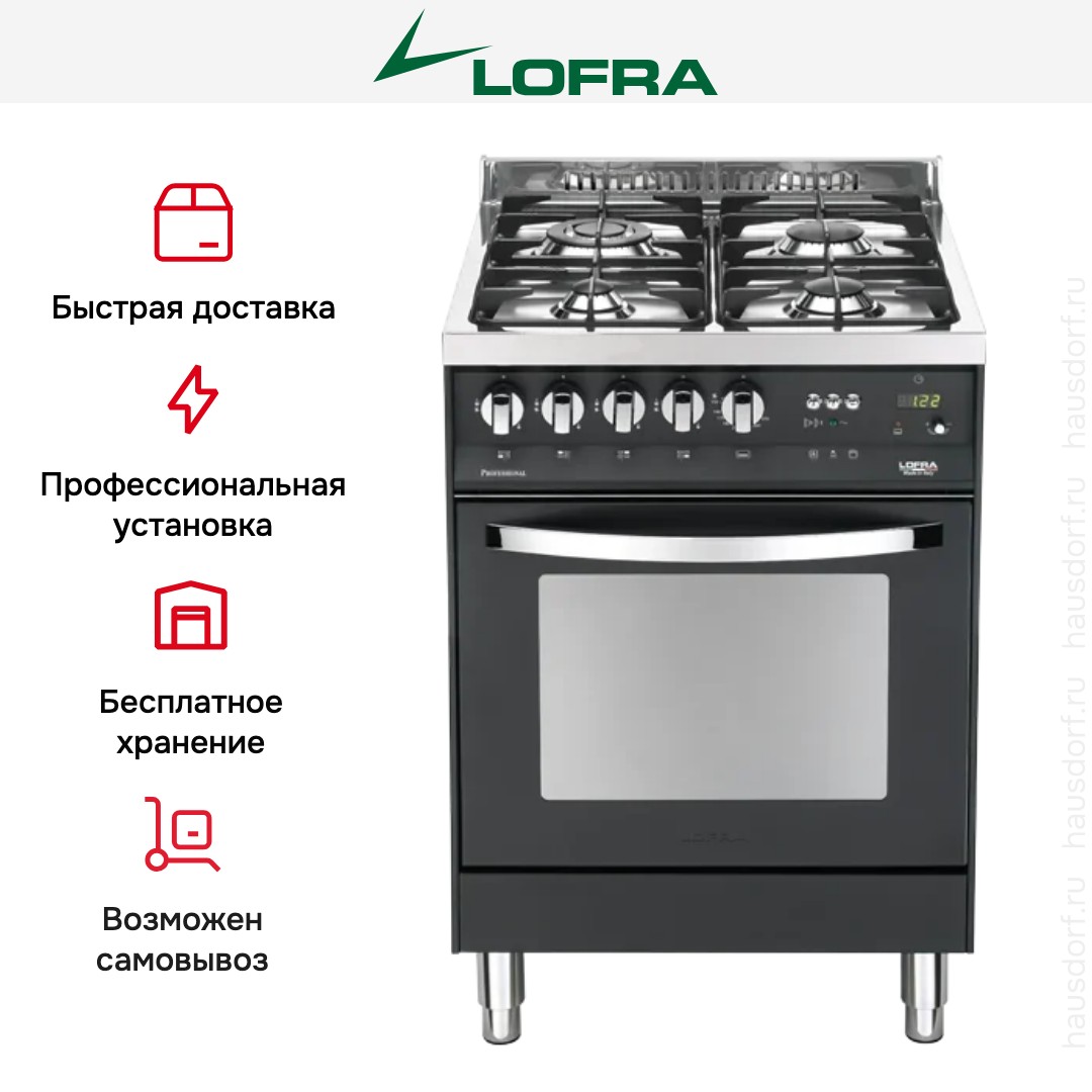 Газовая плита Lofra PNM66GVT/C — отличный выбор как для квартиры, так и для частного дома. Цвет корпуса черный, он гармонично сочетается с мебелью и техникой похожих оттенков, а также может интересно выглядеть на контрасте с ними. Для управления используется удобная и понятная механическая система. Благодаря ей выбирать режимы приготовления и настраивать параметры температуры очень просто. Переключатели не только выполняют техническую функцию, но и поддерживают общий дизайн; тип элементов: поворотные.