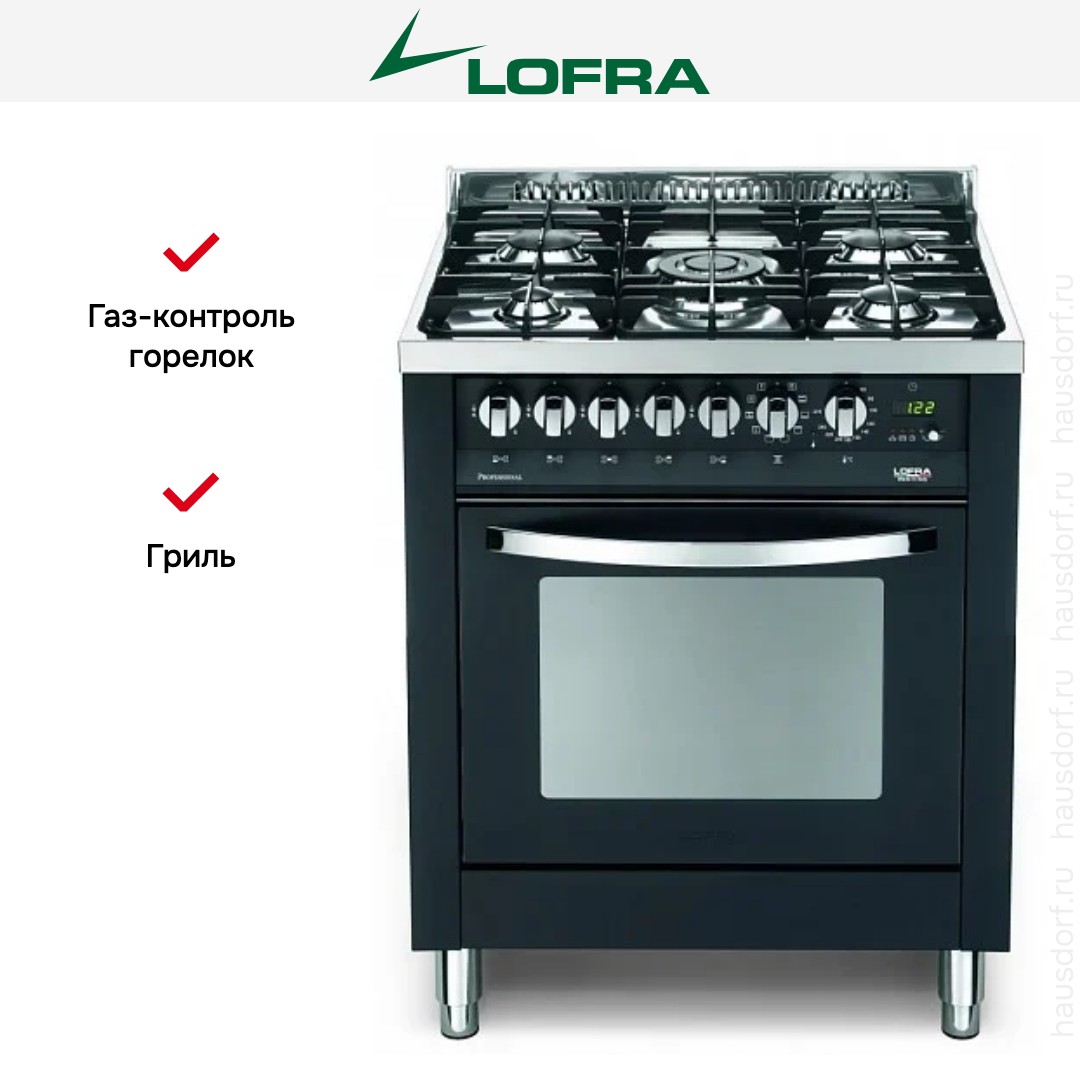 Комбинированная плита Lofra PNM76MFT/C — отличный выбор как для квартиры, так и для частного дома. Цвет корпуса черный, он гармонично сочетается с мебелью и техникой похожих оттенков, а также может интересно выглядеть на контрасте с ними. Для управления используется удобная и понятная электронно-механическая система. Благодаря ей выбирать режимы приготовления и настраивать параметры температуры очень просто. Переключатели не только выполняют техническую функцию, но и поддерживают общий дизайн; тип элементов: поворотные + кнопки.