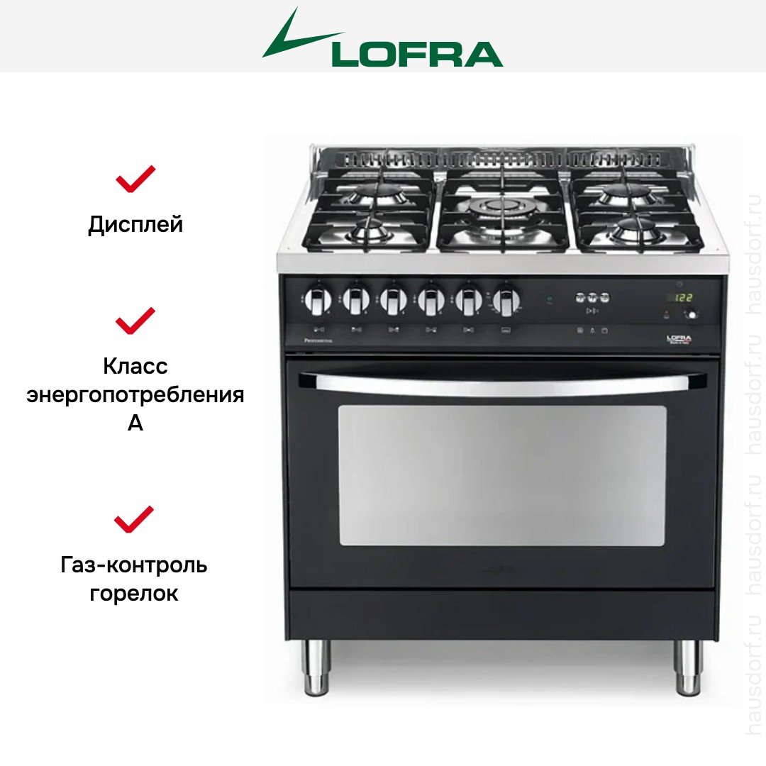 Комбинированная плита Lofra PNMG86GVT/C — отличный выбор как для квартиры, так и для частного дома. Цвет корпуса черный, он гармонично сочетается с мебелью и техникой похожих оттенков, а также может интересно выглядеть на контрасте с ними. Для управления используется удобная и понятная механическая система. Благодаря ей выбирать режимы приготовления и настраивать параметры температуры очень просто. Основная информация о процессе отображается на дисплее. Переключатели не только выполняют техническую функцию, но и поддерживают общий дизайн; тип элементов: поворотные + кнопки.