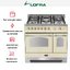 Дизайн модели отражает итальянское понимание стиля: хромированные ручки, прочная фурнитура и лаконичные линии корпуса создают ощущение надёжности и утончённости. Панель управления интуитивно понятна, а дверцы духовок закрываются плавно и бесшумно. Внутренние камеры выполнены из износостойкой эмали, легко поддающейся очистке, а качественное освещение упрощает контроль за процессом готовки.