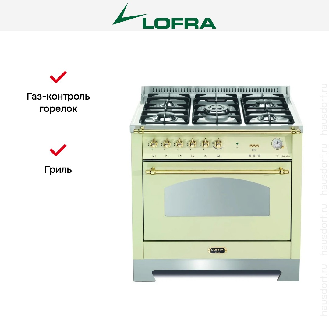 Газовая плита Lofra RBIG96GVGT/Ci Brass — отличный выбор как для квартиры, так и для частного дома. Цвет корпуса бежевый, он гармонично сочетается с мебелью и техникой похожих оттенков, а также может интересно выглядеть на контрасте с ними. Для управления используется удобная и понятная механическая система. Благодаря ей выбирать режимы приготовления и настраивать параметры температуры очень просто. Переключатели не только выполняют техническую функцию, но и поддерживают общий дизайн; тип элементов: поворотные.