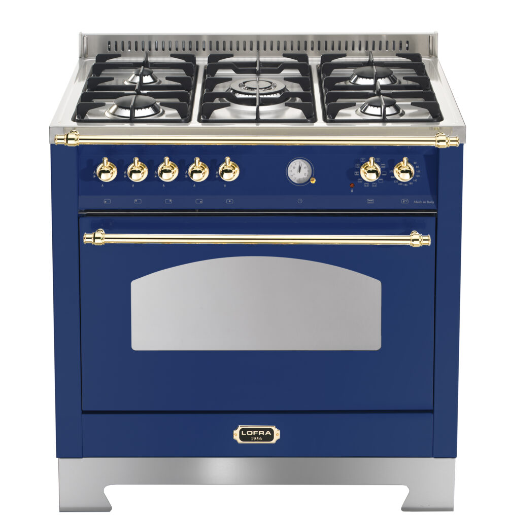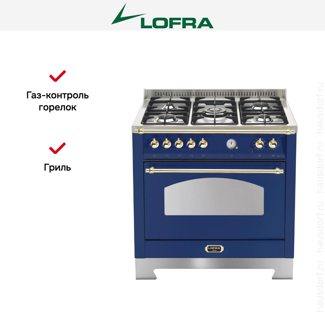Комбинированная плита Lofra RBLG96MFT/Ci Brass — отличный выбор как для квартиры, так и для частного дома. Цвет корпуса синий, он гармонично сочетается с мебелью и техникой похожих оттенков, а также может интересно выглядеть на контрасте с ними. Для управления используется удобная и понятная механическая система. Благодаря ей выбирать режимы приготовления и настраивать параметры температуры очень просто. Переключатели не только выполняют техническую функцию, но и поддерживают общий дизайн; тип элементов: поворотные.