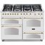 Устройства с тремя духовками также имеют один основной и две дополнительных шкафа разного объема: например, плиты Bertazzoni оснащены большой духовкой объемом 69 литров, средней объемом 54 литра и малой объемом 24 литра. Духовки располагаются в два ряда: две меньшие духовки в одном ряду, большая и ящик для посуды в другом.