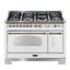 Ширина варочных центров — параметр, которых варьируется в самых больших пределах. Она зависит прежде всего от характеристик модели, в частности, от количества духовок. Производители предлагают модели минимальной шириной 59-60 см с одной духовкой. В магазинах также представлены модели с одной духовкой увеличенной ширины, которая достигает 90 см. Такую же ширину могут иметь варочные центры с двумя духовками, расположенными бок о бок. Модели Lofra с тремя духовками имеют ширину 120 см, а максимальная ширина около 196-200 см отличает модели Restart с дровяной печью и несколькими духовками.