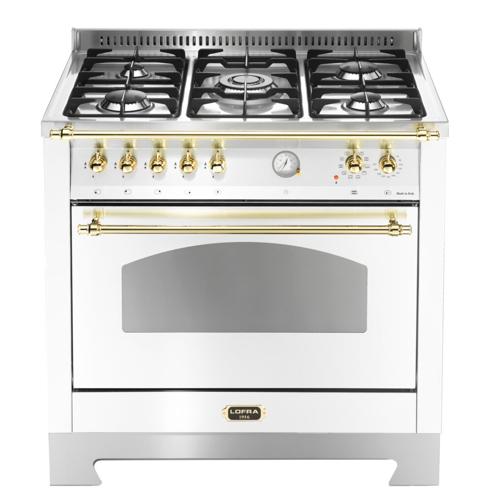 Газовая плита Lofra RBPG96MFT/Ci Brass — отличный выбор как для квартиры, так и для частного дома. Цвет корпуса белый жемчуг, он гармонично сочетается с мебелью и техникой похожих оттенков, а также может интересно выглядеть на контрасте с ними. Для управления используется удобная и понятная механическая система. Благодаря ей выбирать режимы приготовления и настраивать параметры температуры очень просто. Переключатели не только выполняют техническую функцию, но и поддерживают общий дизайн; тип элементов: поворотные.