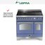 Устройства с тремя духовками также имеют один основной и две дополнительных шкафа разного объема: например, плиты Bertazzoni оснащены большой духовкой объемом 69 литров, средней объемом 54 литра и малой объемом 24 литра. Духовки располагаются в два ряда: две меньшие духовки в одном ряду, большая и ящик для посуды в другом.